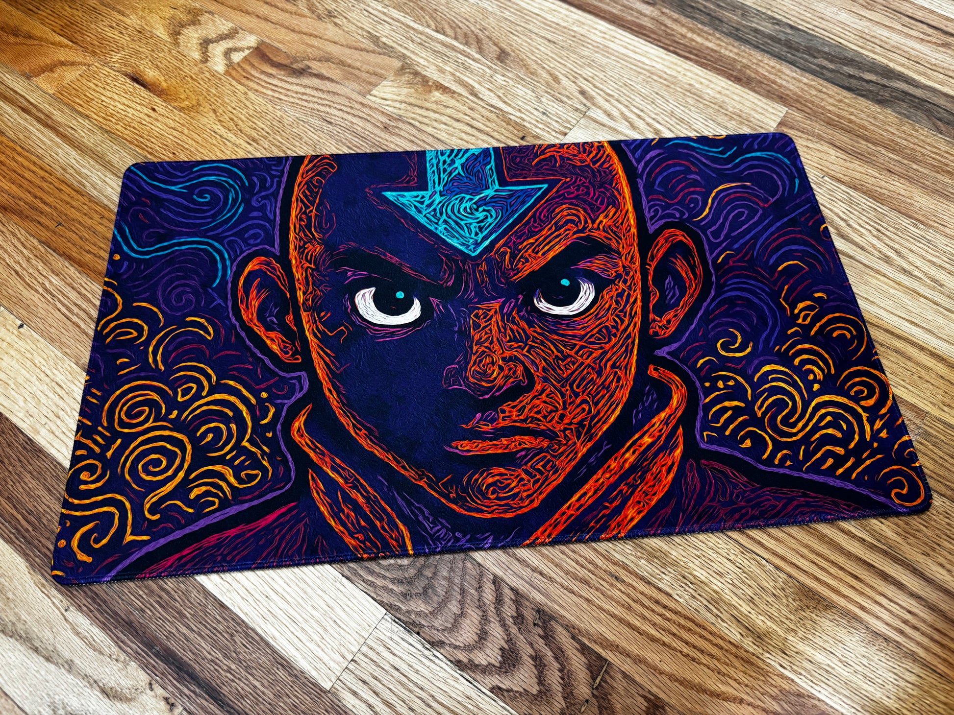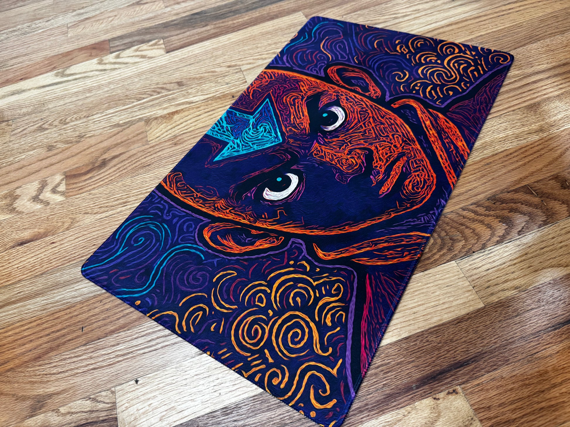 Bring your game table to life with this hand-drawn masterpiece, featuring a bold, high-energy design bursting with color and motion. The vibrant swirls and glowing lines make this playmat an instant showstopper for any card game setup.