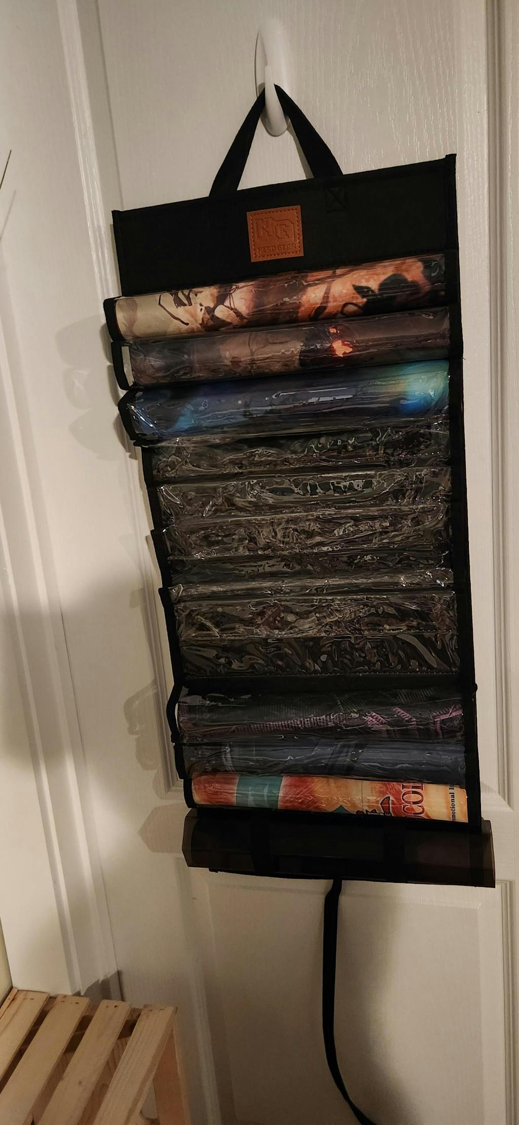 The first purpose built organization and storage solution for your favorite playmats! Great for Magic the Gathering (MTG) playmats and other TCGs!